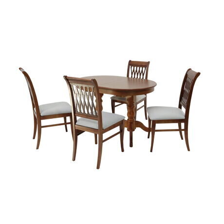 Комплект из деревянного стола Бизе на каркасе из натурального дерева и 4 стула Рич отлично подойдет к интерьеру, выдержанному в классическом стиле. Данный комплект станет центральным элементом в гостиной, столовой зоне, на кухне, позволив создать уютное обеденное место, где смогут собираться члены дружной семьи и их гости.